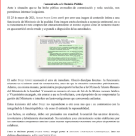 El ministerio agregó que activó sus mecanismos internos de atención, en particular el protocolo «Voces Vivas», para garantizar a la víctima protección integral, confidencialidad y no revictimización.
